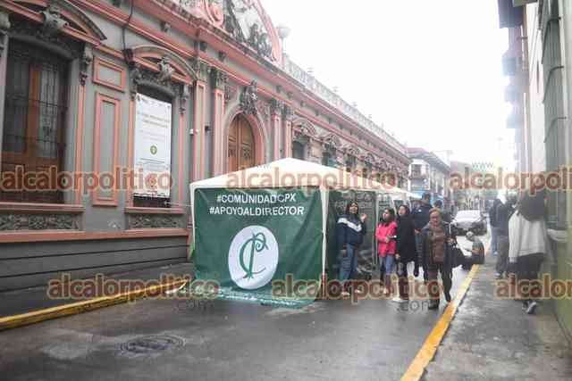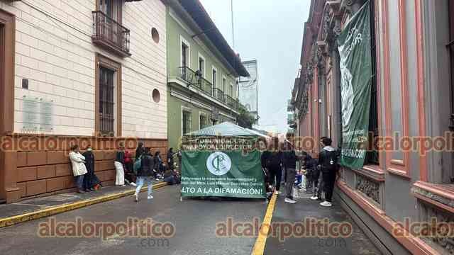 Xalapa, Ver., 20 de junio de 2025.- Este viernes continúa el plantón de estudiantes del Colegio Preparatorio de Xalapa en la calle Juárez, frente al plantel, donde se instalaron varias carpas.