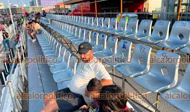 Veracruz, Ver., 30 de junio de 2025.- Hasta las 18:00 horas de este lunes, el desfile del Carnaval programado para las 17:00 horas aún no comenzaba, y había una gran cantidad de lugares vacíos en las gradas.