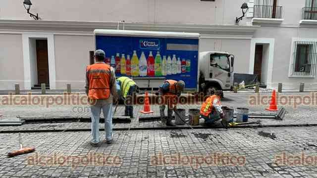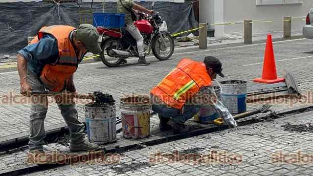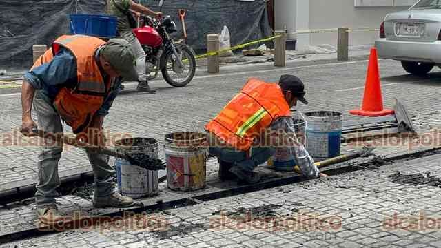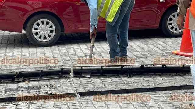 Xalapa, Ver., 1° de julio de 2025.- Continúan los trabajos de desazolve en las calles Enríquez y Zaragoza, en el centro de la Capital.