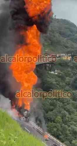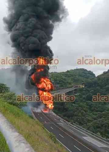 Pipa se incendia en el libramiento Banderilla-Miradores