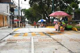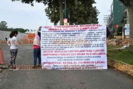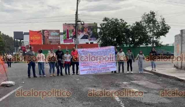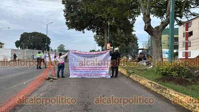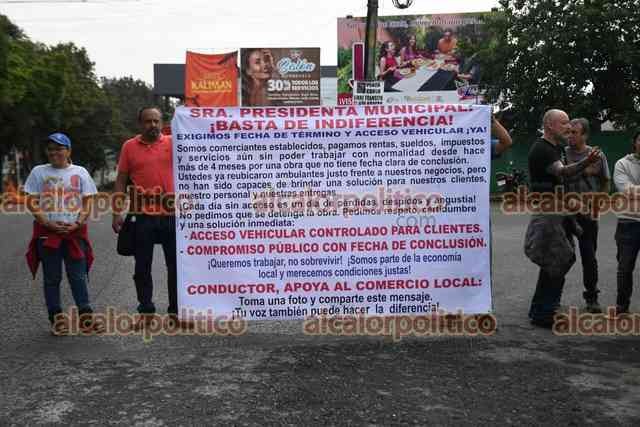 Xalapa, Ver., 2 de julio de 2025.- Comerciantes establecidos de la avenida Araucarias bloquearon la circulación para exigir al Ayuntamiento que acelere rehabilitación en esta vialidad y se reabra el tramo concluido, pues se han visto afectados en sus ventas.
