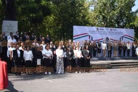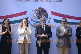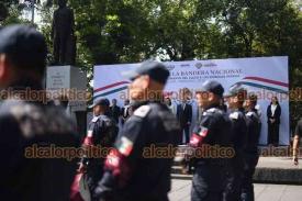 Xalapa, Ver., 7 de julio de 2025.- Autoridades municipales encabezadas por el alcalde Alberto Islas participaron en el izamiento de bandera en el parque Juárez.