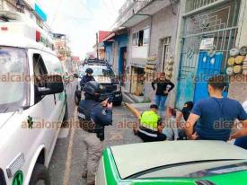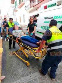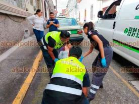 Xalapa, Ver., 7 de julio de 2025.- Mujer resultó lesionada al caer y golpearse contra el pavimento en la calle Azueta, entre Victoria y Altamirano, en el Centro. Paramédicos de Código Bravo le brindaron los primeros auxilios y la trasladaron al Hospital Civil.