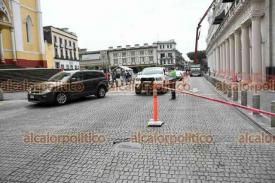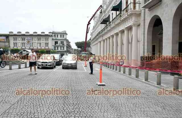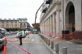 Xalapa, Ver., 9 de julio de 2025.- Cierran un carril de la calle Enríquez por los trabajos de remodelación de Palacio de Gobierno, lo que complica el tránsito en la zona. Maneje con precaución.