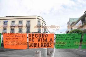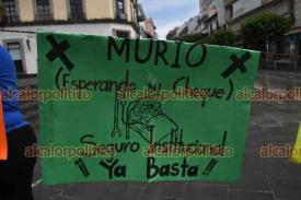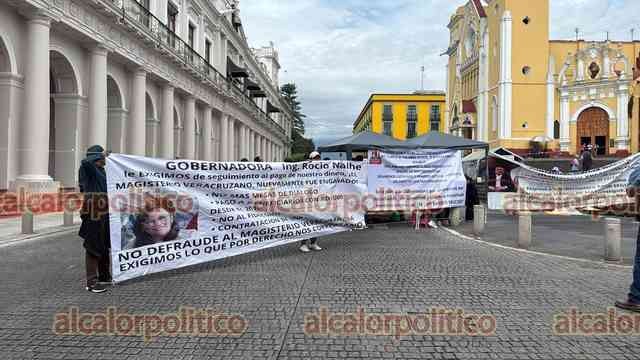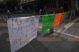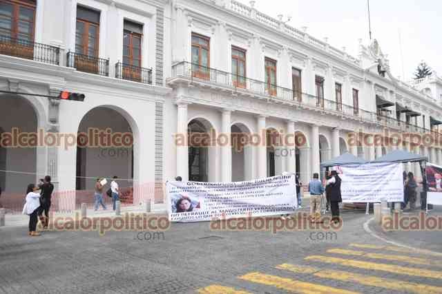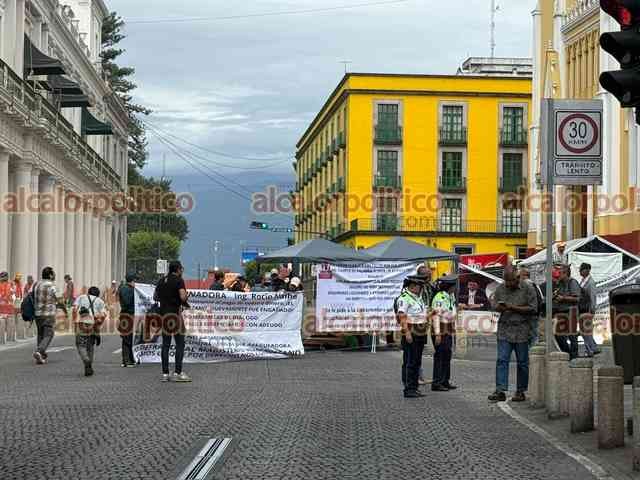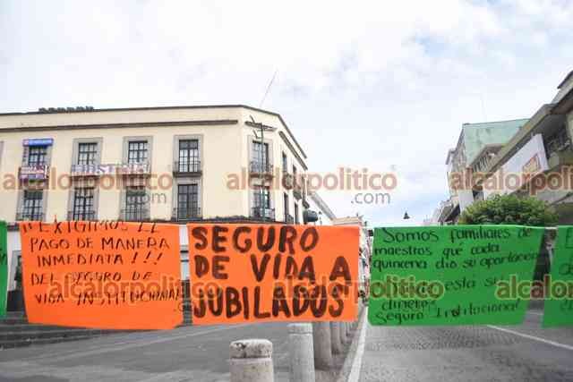 Xalapa, Ver., 29 de julio de 2025.- Docentes que exigen el pago del seguro institucional bloquearon la calle Enríquez, frente al Palacio de Gobierno. Recriminan que son atendidos y escuchados, pero no les resuelven.