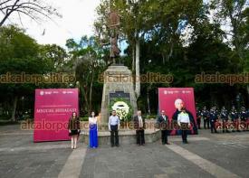 Xalapa, Ver., 30 de julio de 2025.- Representantes del dependencias del Gobierno Estatal conmemoraron el 214 aniversario luctuoso de Miguel Hidalgo, ante su monumento ubicado en el parque de Los Berros.