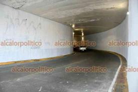 Xalapa, Ver., 3 de agosto de 2025.- Continúan los trabajos de pintura y mantenimiento en el viaducto. Este domingo, las paredes con la obra artística y pintas feministas se encuentran casi cubiertas.