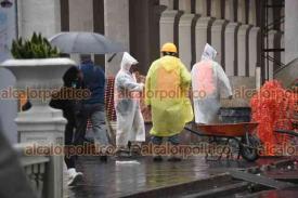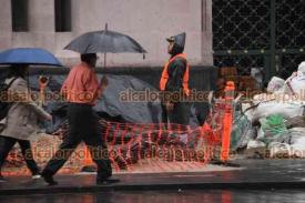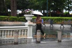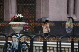 Xalapa, Ver., 7 de agosto de 2025.- Persiste este jueves tiempo lluvioso en la Capital. Abrigados y cubriéndose del agua, los ciudadanos continúan con sus actividades diarias.