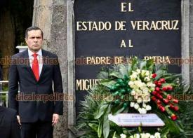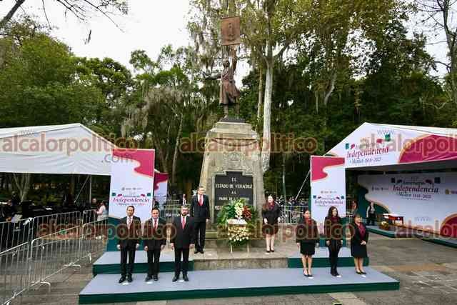 Xalapa, Ver., 1° de septiembre de 2025.- El IPAX rindió guardia de honor ante el monumento a Miguel Hidalgo, en el parque de Los Berros.
