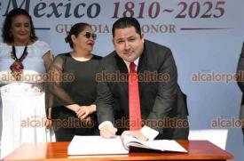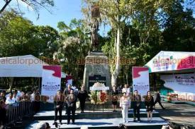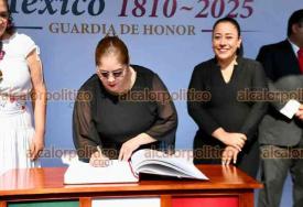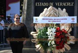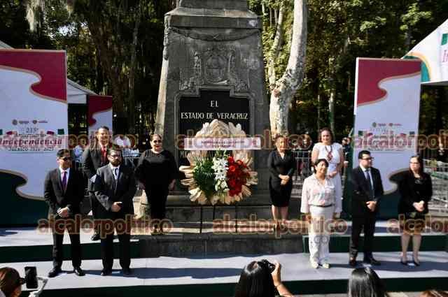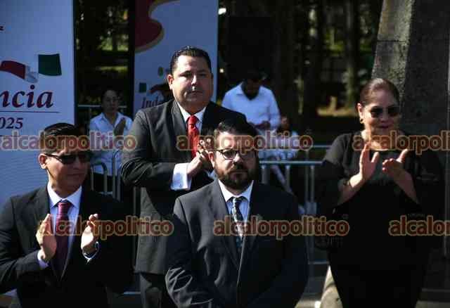 Xalapa, Ver., 3 de septiembre de 2025.- La secretaria de educación Claudia Tello, colaboradores y personal de la SEV montaron guardia de honor ante el monumento de Miguel Hidalgo, el Padre de la Patria, en el parque que lleva su nombre.