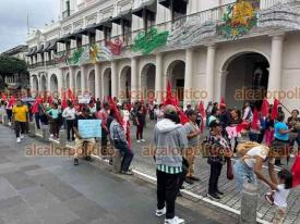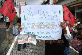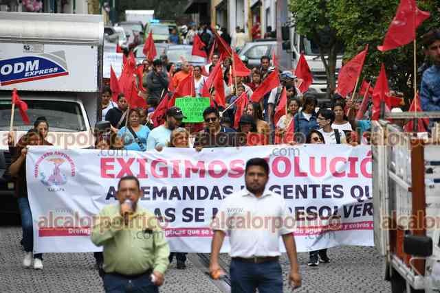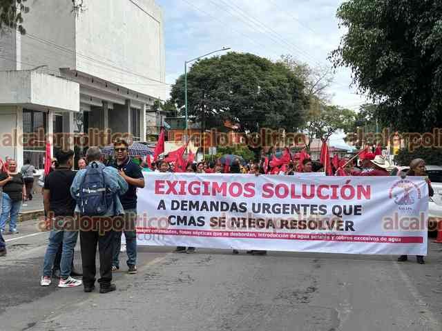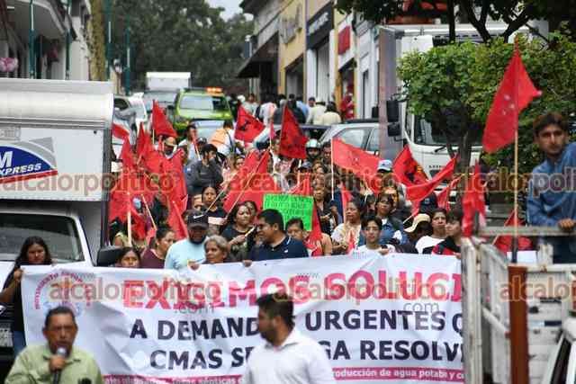 Xalapa, Ver., 30 de septiembre de 2025.- Antorchistas se manifestaron frente a CMAS y marcharon al Centro de la ciudad, donde bloquearon la calle Enríquez, para exigir que les resuelvan diversas demandas sobre el servicio de agua.