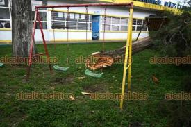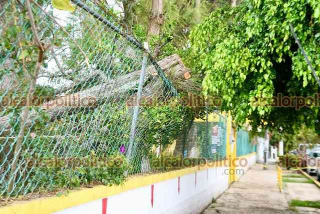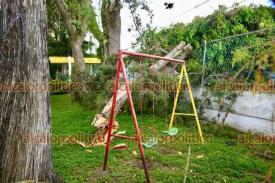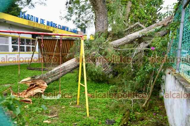 Xalapa, Ver., 1° de octubre de 2025.- Padres de familia del Jardín de Niños “Margarita Maza de Juárez” exigen a las autoridades retirar un árbol que cayó desde el sábado dentro de la institución y representa un riesgo para los alumnos.
