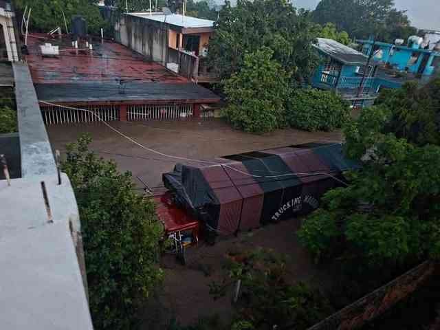 Poza Rica, Ver., 10 de octubre de 2025.- Por el intenso temporal lluvioso en la zona norte del Estado, que arreció durante la noche, el agua prácticamente cubrió la ciudad y afectó a municipios aledaños tras el desbordamiento del río Cazones, provocando un gran desastre a la población. CONAGUA emitió una alerta en Internet casi a la media noche y sonó una alarma después pero pocos tuvieron acceso a esos avisos.