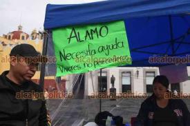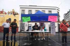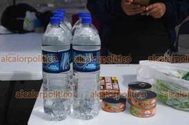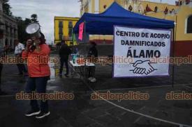 Xalapa, Ver., 10 de octubre de 2025.- Ciudadanos del norte de la entidad instalaron un centro de acopio de víveres en la Plaza Lerdo para los damnificados de Álamo afectados por las inundaciones.