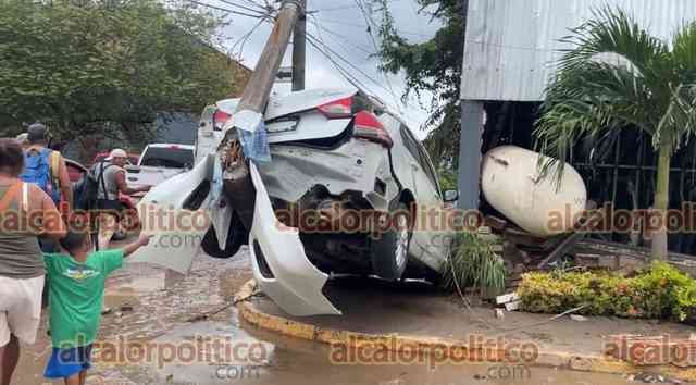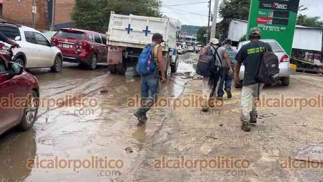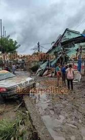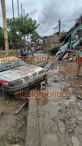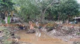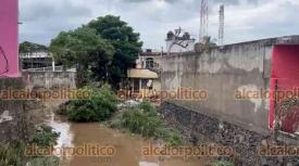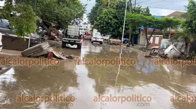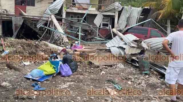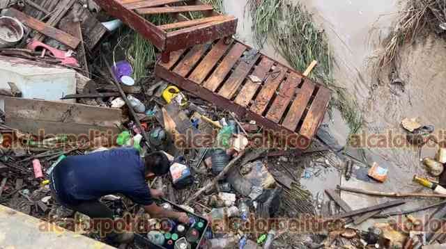 Poza Rica, Ver., 11 de octubre de 2025.- Al disminuir el nivel del cauce del río Cazones quedaron a la vista los grandes daños que sufrió la población tras la grave inundación del viernes.