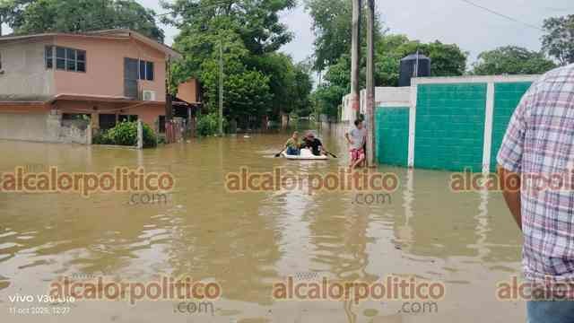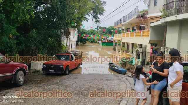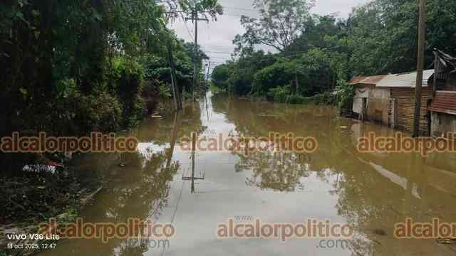 Tempoal, Ver., 11 de octubre de 2025.- La mañana de este sábado calles de esta localidad permanecen inundadas tras las fuertes lluvias. Pobladores de algunas comunidades también solicitan ayuda.