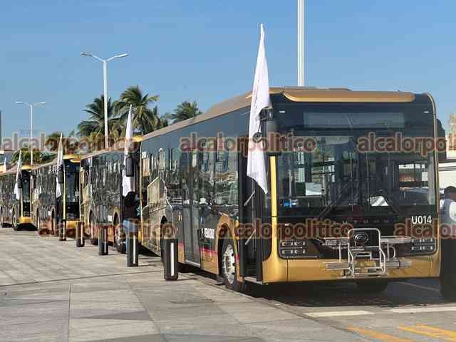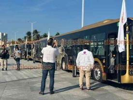 Veracruz, Ver., 31 de octubre de 2025.- Este viernes comenzaron operaciones los autobuses híbridos de manufactura china del “Servicio Ulúa”. Al banderazo de salida asistieron la gobernadora Rocío Nahle, la alcaldesa Patricia Lobeira, funcionarios estatales y concesionarios, entre otros.