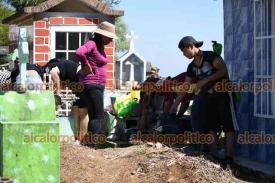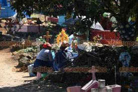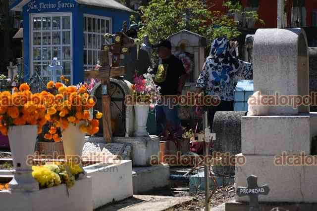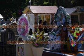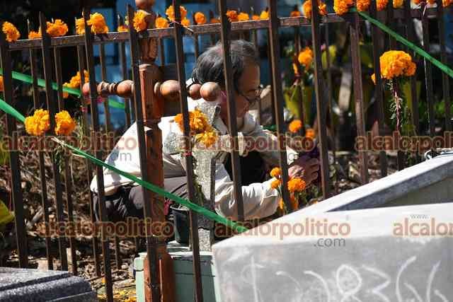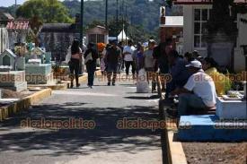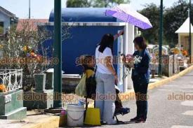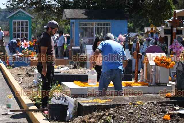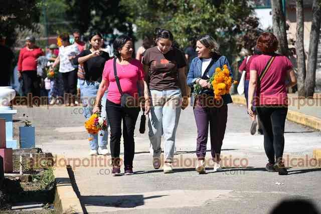 Xalapa, Ver., 1° de noviembre de 2025.- El panteón Palo Verde recibe gran cantidad de visitantes que llegan a arreglar y limpiar las tumbas de sus seres queridos, este sábado de Todos los Santos.