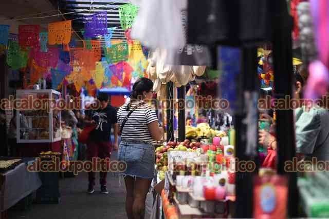 Xalapa, Ver., 1° de noviembre de 2025.- Este sábado continúan las compras por el Día de Muertos en el mercado “San José”, donde se venden desde arreglos florales hasta dulces de temporada.