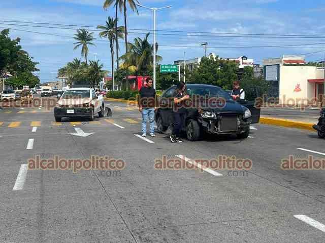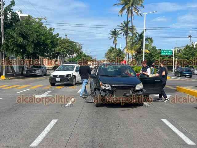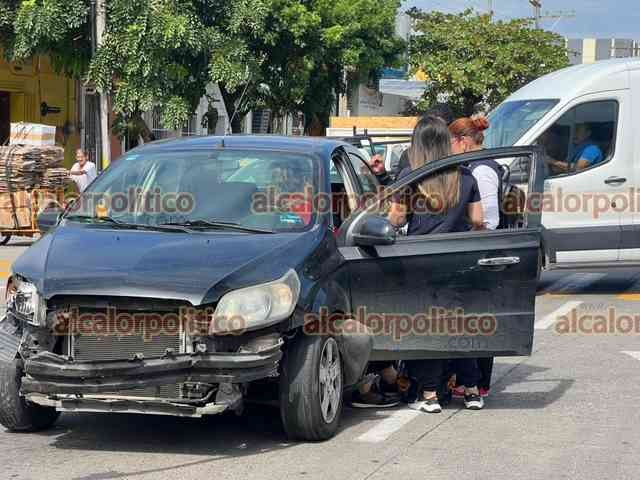 Veracruz, Ver., 3 de noviembre de 2025.- En la avenida Allende y Aquiles Serdán, en la zona centro, colisionaron camioneta y un auto particular cuya conductora resultó lesionada. El percance complicó la circulación varios minutos.