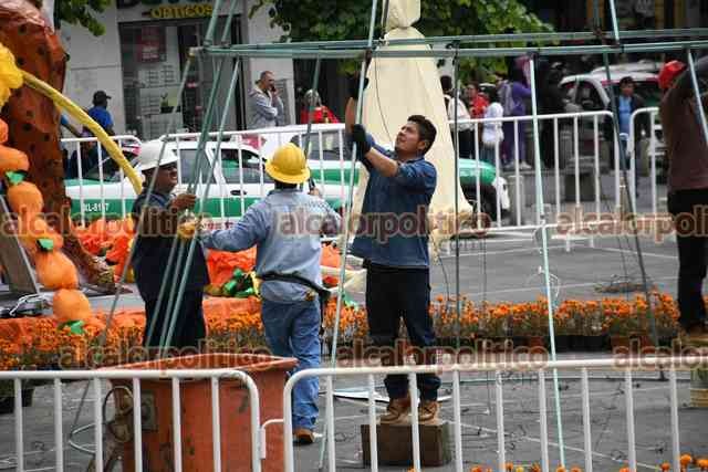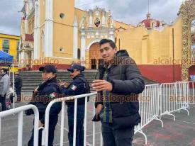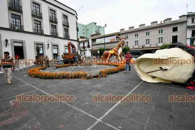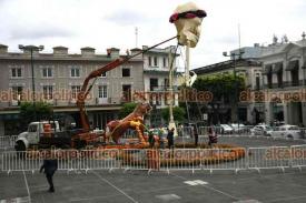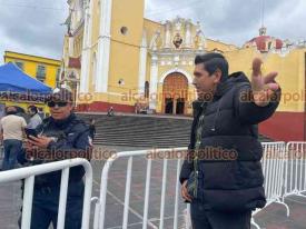Xalapa, Ver., 3 de noviembre de 2025.- Javier Landa, prepotente funcionario de la Secretaría de Cultura, pidió sin razón a policías que retiraran a una fotoperiodista que documentaba la desinstalación de la Catrina Monumental en plaza Lerdo. Dicha persona ya tiene historial de hostilidades contra reporteros por proteger a su jefa Xóchitl Molina.