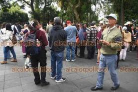 Xalapa, Ver., 5 de noviembre de 2025.- Pobladores de Acajete y Tlacolulan llegaron al Palacio de Gobierno para buscar ser atendidos por el secretario de Gobierno, Ricardo Ahued, ante su conflicto con SEDATU.