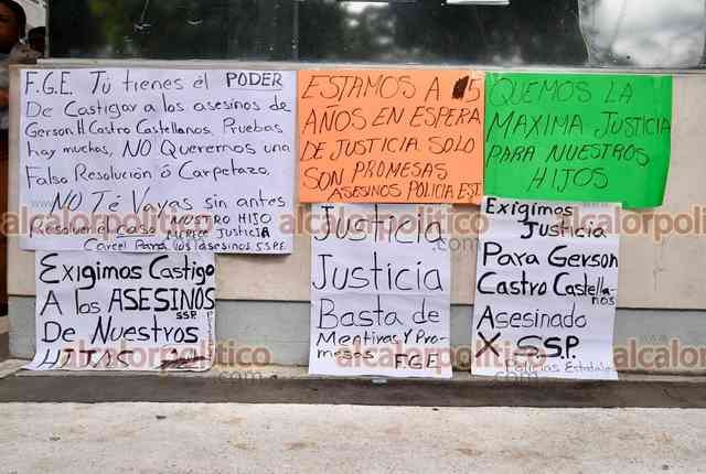 Xalapa, Ver., 6 de noviembre de 2025.- Familiares de víctimas de presuntos abusos policiacos se manifestaron por quinta ocasión frente a las instalaciones de la Fiscalía General del Estado de Veracruz, denunciando impunidad, corrupción y falta de resultados en las investigaciones.