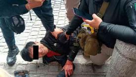 Xalapa, Ver., 6 de noviembre de 2025.- Hombre fue sometido y detenido por policías tras ser señalado de robar en la tienda Chedraui de la calle Lucio, en el Centro.