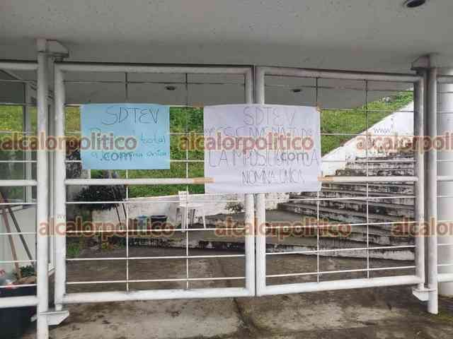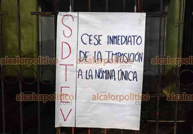 Córdoba, Ver., 28 de noviembre de 2025. Integrantes del SDTEV tomaron la Delegación de la SEV y la Escuela de Bachilleres Artes y Oficios en protesta por lo que consideran una imposición del Gobierno Estatal respecto al esquema de nómina única.
