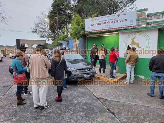 Xalapa, Ver., 28 de noviembre de 2025.- En la Escuela de Bachilleres “Antonio María de Rivera” no hubo clases este viernes a causa de que personal docente y administrativo tomó el plantel como parte de la jornada estatal contra el esquema de nómina única. Se informó que la reanudación de actividades será hasta nuevo aviso.