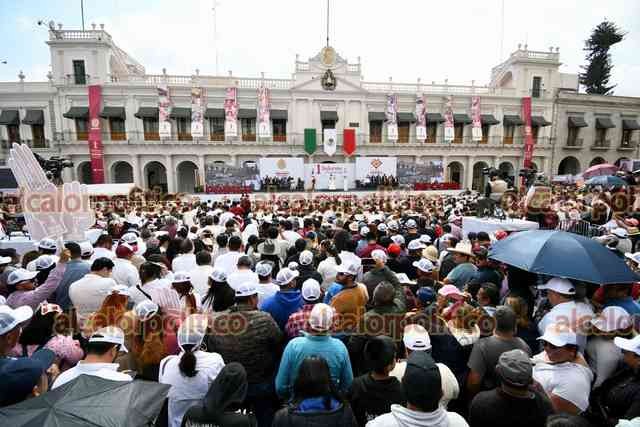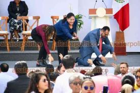 Xalapa, Ver., 30 de noviembre de 2025.- Con la plaza Lerdo llena y una ceremonia indígena, la gobernadora Rocío Nahle inició el evento de su primer informe de Gobierno el mediodía de este domingo.