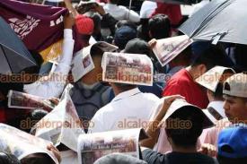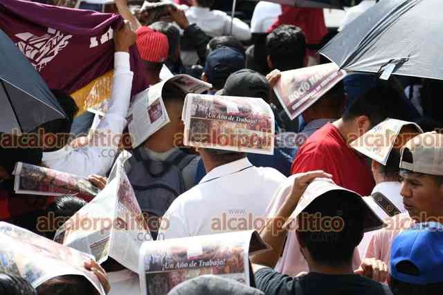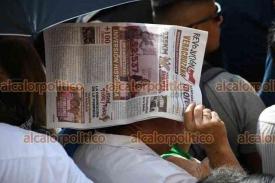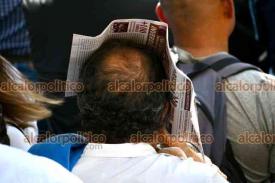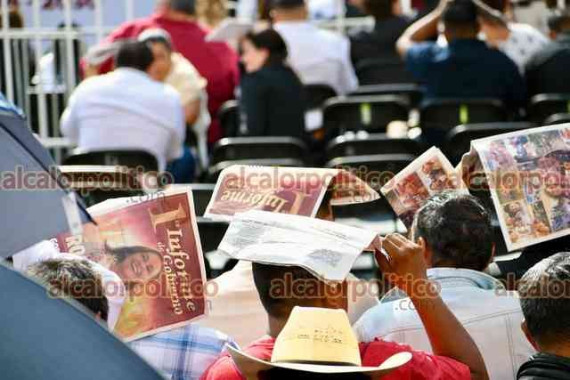 Xalapa, Ver., 30 de noviembre de 2025.- Ante el calor y el sol durante el Informe de Gobierno, los asistentes se cubrieron con lo que pudieron, usando el periódico que se repartió con motivo del evento.