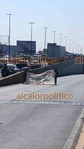 Xalapa, Ver., 1° de diciembre de 2025.- Integrantes del FNLS iniciaron cierres intermitentes en la avenida Lázaro Cárdenas, frente a las instalaciones del Poder Judicial.