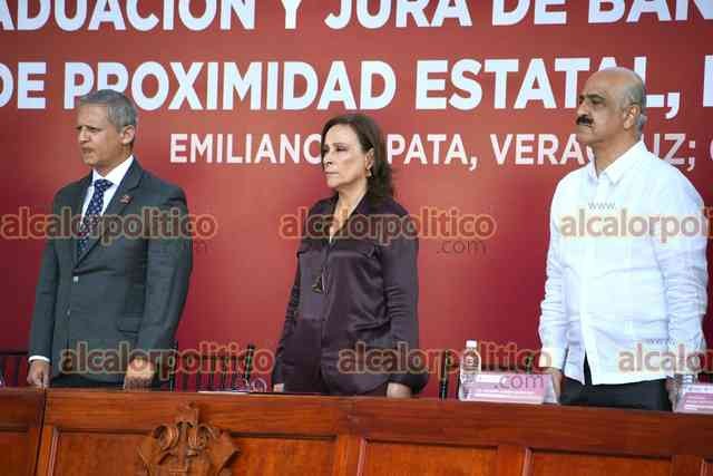 Emiliano Zapata, Ver., 3 de diciembre de 2025- En el CEIS, la gobernadora Rocío Nahle encabezó la ceremonia de graduación y jura de bandera del “Curso de Formación Inicial para Policía de Proximidad Estatal, Municipal y Policía Penitenciario”.
