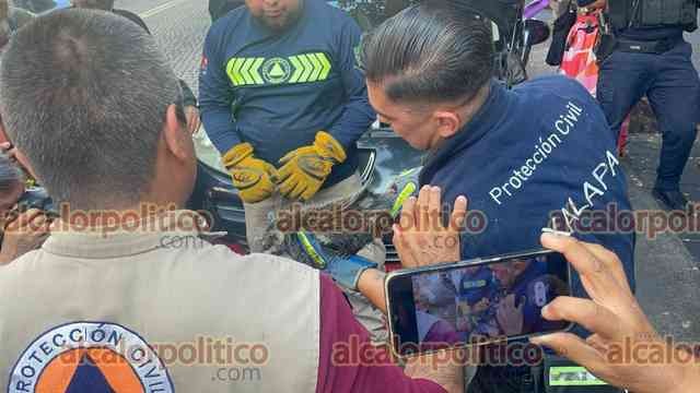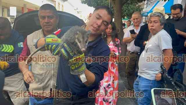 Xalapa, Ver., 4 de diciembre de 2025.- Protección Civil Municipal rescató a un tlacuache que se ocultaba dentro de un automóvil, en el Centro de la ciudad. Fue llevado a una Unidad de Manejo Animal.