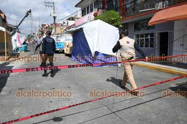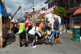 Xalapa, Ver., 11 de diciembre de 2025.- Después de mediodía continuaban los trabajos para retirar los postes que derribó una camioneta en la zona de El Dique. Lo ocurrido complicó a peregrinos su andar por la zona.