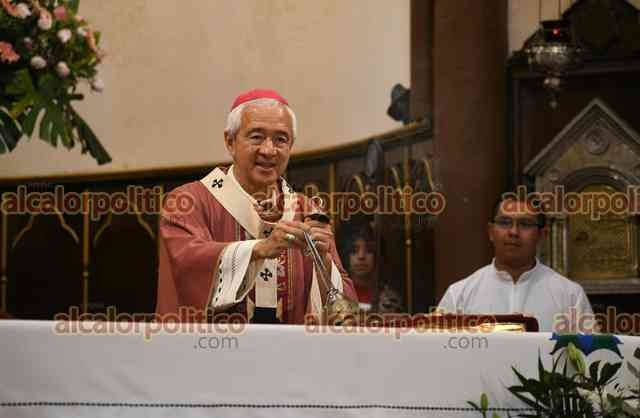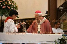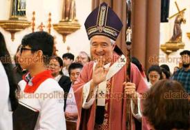 Xalapa, Ver., 14 de diciembre de 2025.- El arzobispo de Xalapa, Jorge Patrón Wong, ofició la misa dominical en Catedral.
