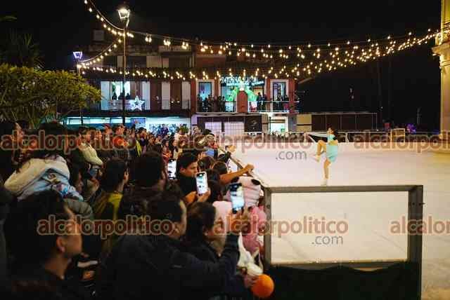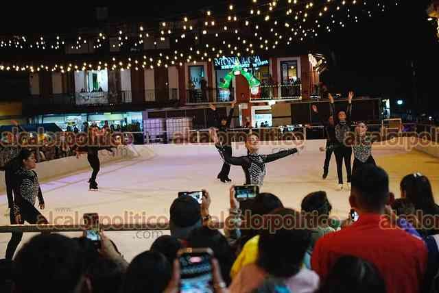 Coatepec, Ver., 15 de diciembre de 2025.- La tarde de ayer domingo, en la explanada del parque Hidalgo, fue inaugurada la pista de hielo gratuita, la cual abrirá todos los días de diciembre de 16:00 a 23:00 horas. Patinadores profesionales dieron show a las familias que se congregaron.