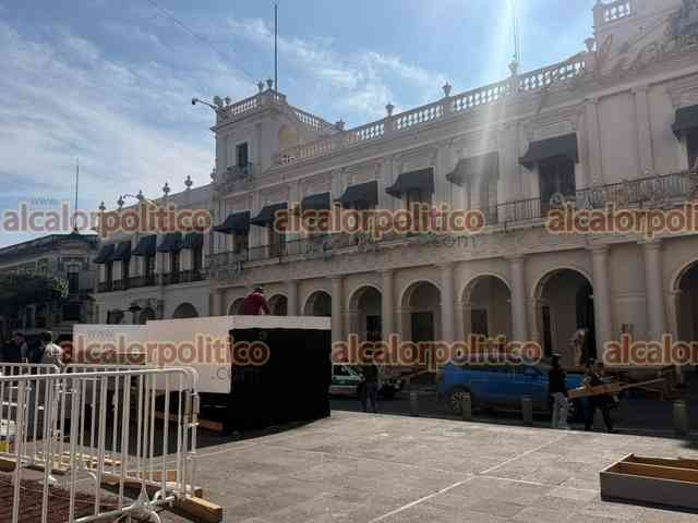 Xalapa, Ver., 18 de diciembre de 2025.- Alistan templetes para el desfile navideño "Luz y Unión" de este viernes a las 18:00 horas.