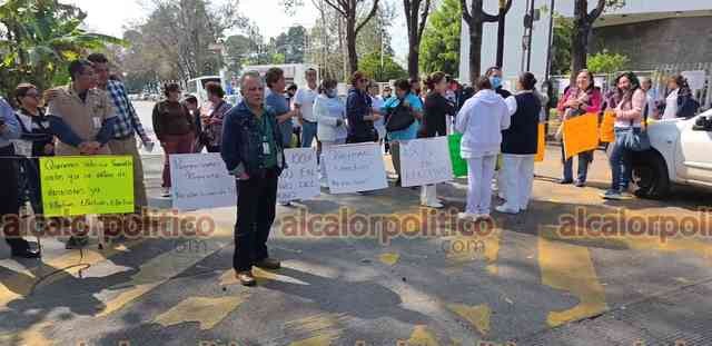 Xalapa, Ver., 19 de diciembre de 2025.- Trabajadores de la Secretaría de Salud también bloquearon la avenida Ruiz Cortines, frente al Centro de Alta Especialidad, porque el Gobierno de Veracruz no paga bonos de fin de año en efectivo.
