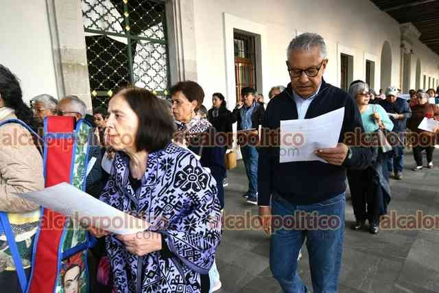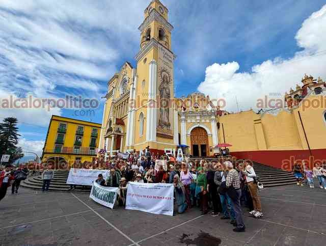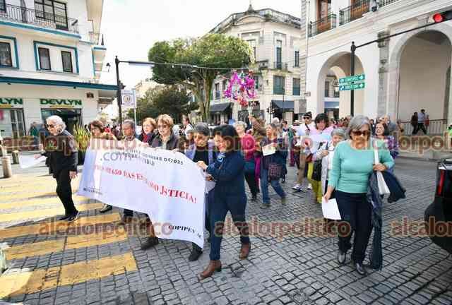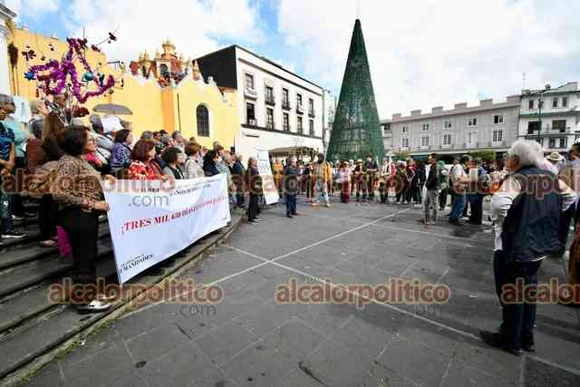 Xalapa, Ver., 23 de diciembre de 2025.- Integrantes de la COPIPEV se manifestaron en la Plaza Lerdo para exigir justicia a 10 años del desalojo que sufrieron en 2015 por parte de policías estatales, durante el Gobierno de Javier Duarte.