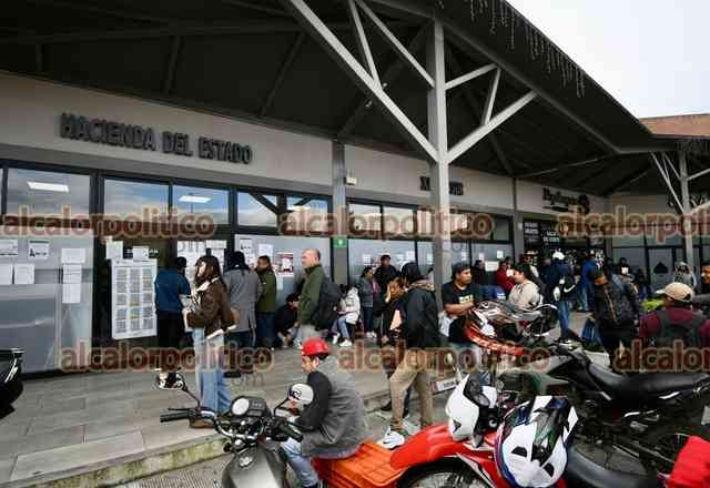 Xalapa, Ver., 30 de diciembre de 2025.- En la oficina de Hacienda del Estado, frente a la sede del Registro Civil municipal, a la entrada hacia la Central de Abasto, también hay motociclistas en espera de ser atendidos por la escasa burocracia.