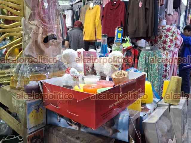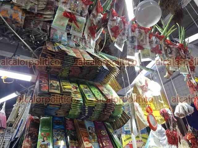 Córdoba, Ver., 31 de diciembre de 2025.- Comerciantes de artículos esotéricos del mercado “Revolución” refieren que los amuletos más solicitados son las monedas chinas, los elefantes, las pulseras de hilo rojo, las velas doradas y las herraduras. “La gente busca protección y estabilidad económica; muchos esperan que el próximo año sea mejor”, dicen.