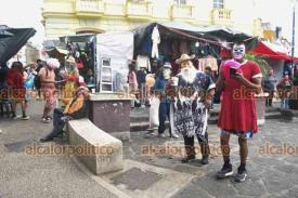 Xalapa, Ver., 31 de diciembre de 2025.- Personas disfrazadas de mujer, bailan y festejan al tradicional “Viejo” en la zona de mercados de la Capital.