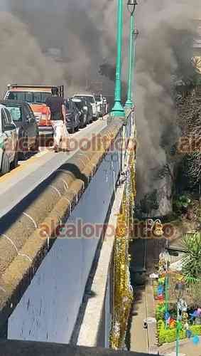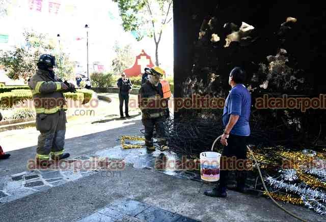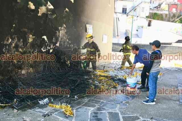 Xalapa, Ver., 2 de enero de 2026.- Bajo el puente de Xallitic, hombre en situación de calle le prendió fuego a adornos navideños en el sitio. Personas que se encontraban en los lavaderos corrieron con cubetas a apagar el fuego. El responsable huyó.