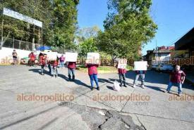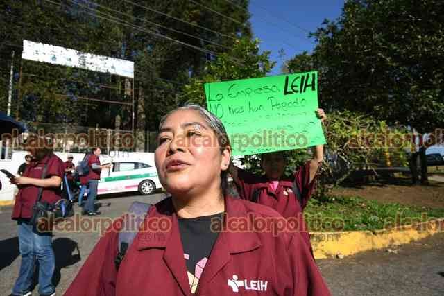 Xalapa, Ver., 2 de enero de 2026.- Trabajadores de la empresa Limpieza Especializada Industrial y Hospitalaria (LEIH) de varios centros de salud y nosocomios bloquearon la calle Soconusco, frente al CECAN, en protesta por la falta de pago de quincena y aguinaldo.