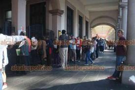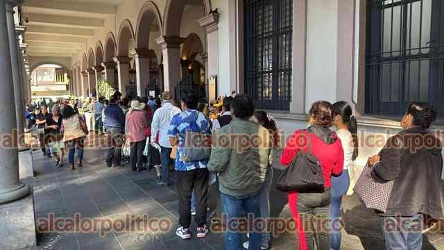 Xalapa, Ver., 5 de enero de 2026.- Este lunes continúa gran afluencia de ciudadanos que acuden al Palacio Municipal a pagar el impuesto predial. Se observan largas filas afuera del inmueble.