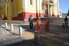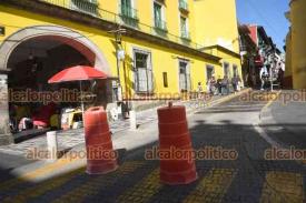 Xalapa, Ver., 6 de enero de 2026.- Por trabajos en la Catedral Metropolitana, se cerró el paso vehicular en la calle Revolución, entre Enríquez y Juárez. Quedó abierto pasadas las 13:30 horas.