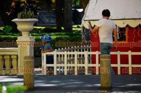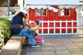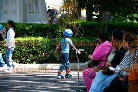 Xalapa, Ver., 6 de enero de 2026.- Este Día de Reyes se observaron en el parque Juárez algunos niños estrenando los regalos que recibieron y a otras personas cargando la rosca.