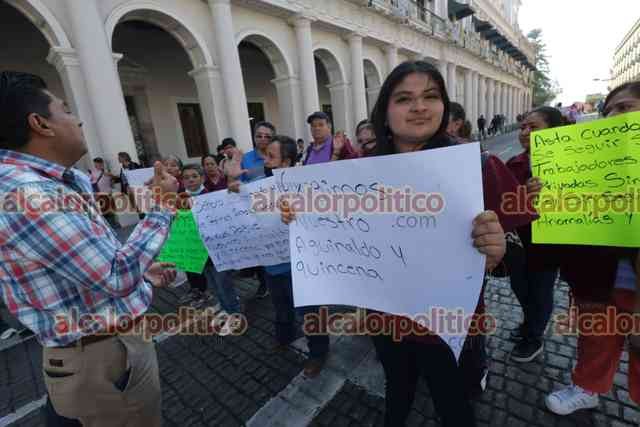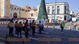 Xalapa, Ver., 6 de enero de 2026.- Trabajadores de la empresa LEIH bloquearon la calle Enríquez para exigir su aguinaldo y quincena.